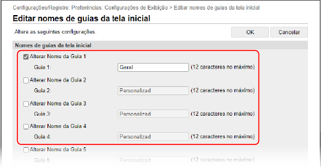 A tela [Editar nomes de guias da tela inicial] é exibida.