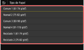 Selecione o tipo de papel colocado na bandeja multiuso.
