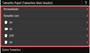Pressione [Outros Tamanhos] e selecione o tamanho do papel na lista exibida.
