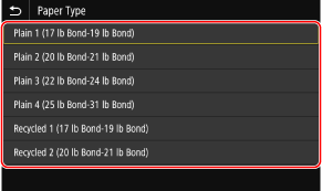 If you frequently need to change the paper to be loaded, set to [Free]; this will reduce the number of steps required to change the setting each time. However, note that this setting lets the machine perform printing even if there is mismatch between the paper type setting in the printer driver and the paper type actually loaded in the machine.