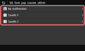 L'écran [Sél. form. pap. couram. utilisés] s'affiche.