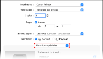Dans le menu contextuel des options d'impression, sélectionnez [Fonctions spéciales].