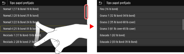 Mueva el dedo mientras toca la pantalla y suéltelo en la posición que desee. Puede desplazarse por listas y mover el área que está tocando hasta la posición que desee.
