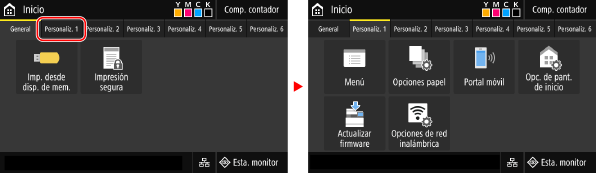 Si toca una pestaña, aparece la pantalla correspondiente a la pestaña seleccionada.