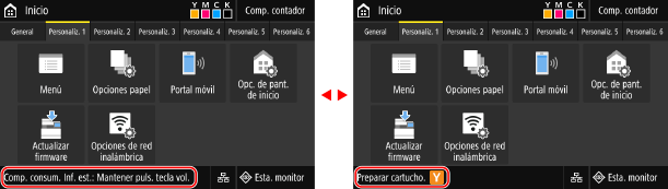 Esta pantalla se muestra al pulsar [] en el panel de control. De forma predeterminada, la pantalla [Inicio] aparece después de encender el equipo e inmediatamente después de que se cierre la pantalla de inicio, e inmediatamente después de iniciar sesión. Pantalla [Inicio]