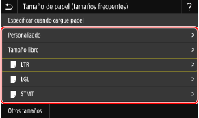 Pulse [Otros tamaños] y seleccione el tamaño de papel en la lista que aparece.