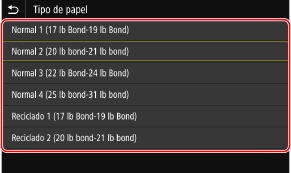 Si necesita cambiar con frecuencia el papel que se va a cargar, configure esta opción como [Libre]; esto reducirá el número de pasos necesarios para cambiar la configuración cada vez. Sin embargo, tenga en cuenta que esta configuración permite que la máquina realice la impresión incluso si hay una falta de coincidencia entre la configuración del tipo de papel del controlador de la impresora y el tipo de papel realmente cargado en la máquina.