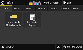 ![]() | [Configurações Tela Início] Adiciona botões de atalho à tela [Início] e reorganize os botões. Personalizando a tela [Início] | |