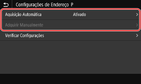 A tela [Configurações End. IP (Aquisição Auto)] é exibida.