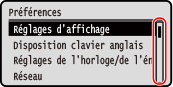 Lorsque la barre de défilement apparaît à l'écran, cela indique que certains éléments ou informations ne peuvent pas être affichés complètement à l'écran. Utilisez