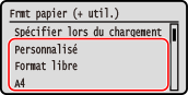Lorsque du papier de format non standard (format personnalisé) est chargé