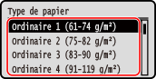 Sélectionnez le type de papier à enregistrer et appuyez sur