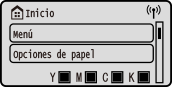 Cambiar la visualización de pantallaPuede cambiar elementos de visualización del panel de control como el idioma y las unidades, y mostrar u ocultar mensajes. [Opciones de visualización] Puede invertir los colores de la pantalla y ajustar el brillo para que se vea mejor. [Accesibilidad] Borrar las opciones automáticamenteDe forma predeterminada, si no se realiza ninguna operación durante un determinado periodo de tiempo, se borran las opciones configuradas en la pantalla y aparece la pantalla [Inicio]. Puede cambiar el tiempo que debe transcurrir antes de que se borren las opciones y aparezca la pantalla posterior. [Tiempo reinic. auto.] [Función tras reinicio auto] |