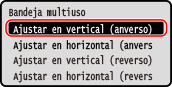 Ejemplo: Si se ajusta la posición de impresión del anverso del papel en posición vertical