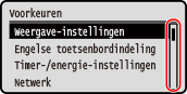 om het scherm in de richting te bewegen waarheen u drukte. Het huidige geselecteerde item wordt geïnverteerd.