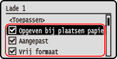 Het scherm met papierinstellingen toont de geregistreerde veelgebruikte papierformaten. Als ongebruikte papierformaten worden weergegeven, kunt u deze verbergen voor iedere papierbron, zodat het selecteren van een papierformaat makkelijker gaat.