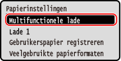 Als u altijd hetzelfde papier in de multifunctionele invoer gebruikt, kunt u papierformaat en -soort registreren. Dit verhindert dat het scherm voor de papierinstellingen verschijnt, wat u de moeite van het instellingen kiezen bespaart.