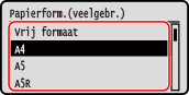 Als papier in de liggende afdrukrichting is geladen, selecteert u [A5]. Als papier in de staande afdrukrichting is geladen, selecteert u [A5R].