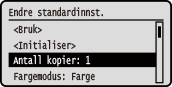 Gjenopprette standardinnstillinger til standard fra fabrikkPå skjermbildet i trinn 3, trykker du på [<Initialiser>] [Ja] . |