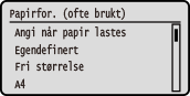 Du kan bla nedover på skjermbildet hvis du vil vise papirformater (som konvolutter) som ikke vises på skjermen.