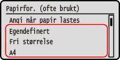 Når papir med annet format enn standard (egendefinert format) er lagt i