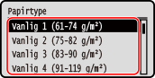 Velg papirtypen som skal registreres og trykk på