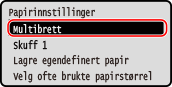 Hvis du alltid bruker samme papiret i flerfunksjonsskuffen, kan du registrere papirformat og -type. Dette gjør at skjermbildet for papirinnstillinger ikke vises, og at du ikke trenger å konfigurere innstillingene.