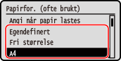 Når papir med annet format enn standard (egendefinert format) er lagt i