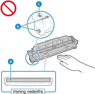 Vær forsiktig så du ikke berører trommelflaten nederst på tonerkassetten.