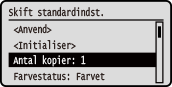 Gendannelse af standardindstillingerne til fabriksindstillingernePå skærmen i trin 3 skal du trykke på [<Initialiser>] [Ja] . |