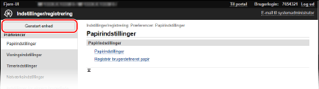 Hvis du ændrer indstillingerne ved hjælp af enten betjeningspanelet eller Fjern-UI, kan du genstarte maskinen ved hjælp af afbryderen eller Fjern-UI.