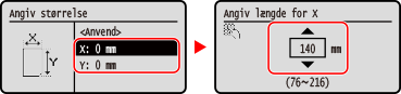 Du kan registrere størrelserne, hvis du ofte bruger papir i specifikke ikke-standardstørrelser. Du kan hente papiret frem på papirangivelsesskærmen, hvilket sparer dig for besværet med at indtaste størrelsen.