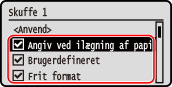 Papirstørrelser, hvis afkrydsningsfelter er ryddet, vises ikke på papirindstillingsskærmen.