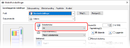 I [Papirstørrelse] under printerindstillingerne skal du vælge papirstørrelsen for dokumentet.