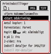 Skærmen med indstillinger for udskrivning fra hukommelsesmedier vises.