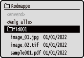 * Kun filer i samme mappe kan vælges på samme tid. Hvis du flytter mappen, annulleres filvalget.