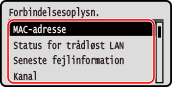 Ud over MAC-adressen og forbindelsesinformationerne for trådløst LAN, når maskinen er forbundet til det trådløse LAN, kan du også få vist sikkerhedsindstillingerne.