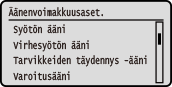 Valitse, toistetaanko ääni, jos painetaan väärää näppäintä, jos esimerkiksi syötetään asetusalueen ulkopuolella oleva arvo.