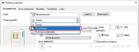 Katso lisätietoja suojatun datan lähettämisestä Salattu turvatulostus -toimintoa käyttämällä, katso ajurin käyttöopas online-opassivustolla.
