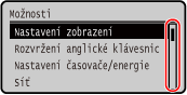 Když se na obrazovce objeví posuvník, znamená to, že jsou k dispozici položky nebo informace, které nelze na obrazovce zcela zobrazit. Použijte  nebo pro posun po obrazovce v požadovaném směru. Aktuálně vybraná položka je obrácena.