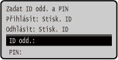 Pokud je nastavena správa ID oddělení, zobrazí se následující přihlašovací obrazovka. Pro přihlášení zadejte ID oddělení. Pokud je nastaven kód PIN, zadejte jej.