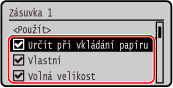 Velikosti papíru, jejichž políčka nejsou zaškrtnutá, se na obrazovce nastavení papíru nezobrazí.