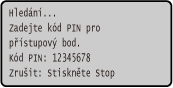 Jakmile se zobrazí tato obrazovka, musíte do 10 minut zaregistrovat do směrovače bezdrátové sítě LAN kód PIN funkce WPS.