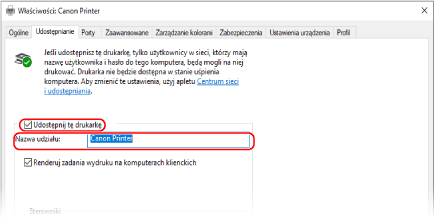 [Właściwości drukarki].