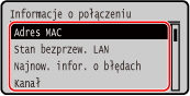 Wyświetlanie adresu MAC i informacji o połączeniu bezprzewodowej sieci LAN