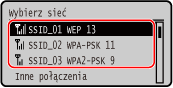 Aby określić inną metodę uwierzytelniania lub szyfrowania, użyj metody ręcznej konfiguracji połączenia. Łączenie się z bezprzewodową siecią LAN przez skonfigurowanie szczegółów (metoda konfiguracji ręcznej)
