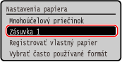 Nastavenie veľkosti a typu papiera pre zásuvku na papier