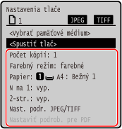 Zobrazí sa obrazovka nastavení tlače z pamäťového média.