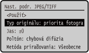 Obrazovka [Nast. podr. JPEG/TIFF]