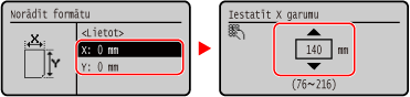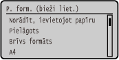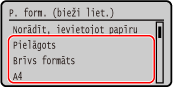 Varat mainīt ekrānā parādīto papīra formātu 1. darbības laikā. Neizmantoto papīra formātu paslēpšana